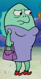 (Martha Smith) مارثا سميث هي سمكة ترتدي قميص بنفسجي و لونها اخضر و تمسك حقيبة لونها بنفسجية و حذاء احمر اللون و لون عيناها اسود