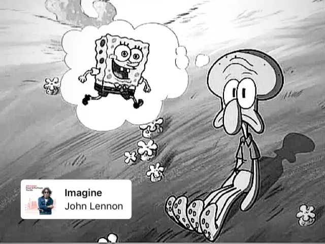 <p>A blurry image of Patrick who is floating in a dark purple abyss.