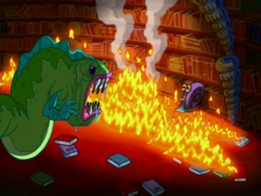 SpongeBob: [runs out] Fluffy! Fluffy, wait! [Gary slithers to SpongeBob] Well, Gary, what do you have to say for yourself?