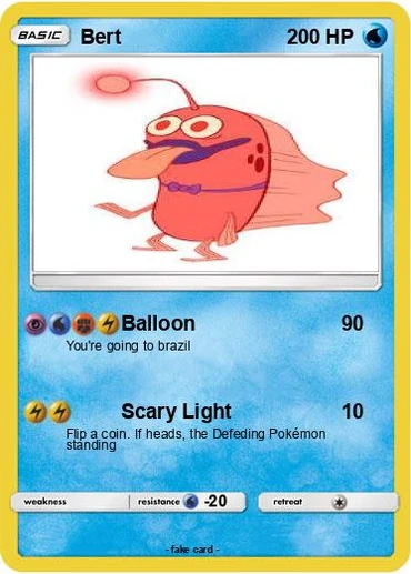 Markmossing·3/15/2014in GeneralIs The Red Angler Fish Realy from Rock Botom?<p>I think the Red Angler Fish may have over to rock bottom from a different deep sea town! Also I think he should have re appeared in more episodes were spongebob invites him to bikini Botom. </p> (Edited by Markmossing)Bert (Rock Bottom)