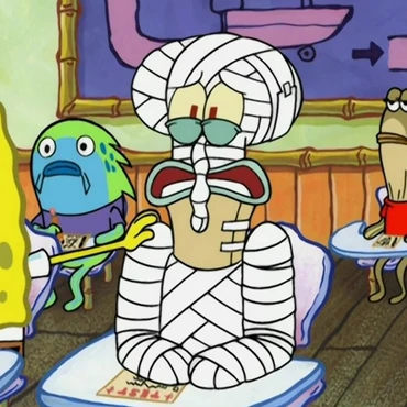 So, when SpongeBob, Squidwart and Mrs Pop go to the boatmobile and of course SpongeBob drives. They go through things that are made to fill time like Barg-n-Mart and a costume shop. The costumes used by Mrs Puff, SpongeBib and Squidward are Mrs Puff as Jason, Squidward as a chef and SpingeBib as a monkey. Monkeys are too good for this episode. Then they get into a laboratory, which is also filler, though it is actually kinda good? Sorry I mentioned this here, since I was going to mention the good stuff later, so uhhhh. Then they shrink and go down The Main Drain. Yea, this writing is just like this: Throwing crap into walls and seeing what sticks! Then they get back to the Boating school and resize. Puff and StalkerBob CreeperPants come out of a water drinking thingy and Squidward literally COMES OUT OF A TOILET AND THE PERSON WHO BEAT UP SQUIDWARD LAST TIME, BEATS HIM UP AGAIN!!! AND HE STILL DOESN’T GET TO LEAVE SCHOOL. Now Squidward is in a full cast. Mrs. Puff announces that will have a test, but what would you guess? Squidward can’t do the quiz. SpongeBob tries to help SquidBob TentaclePants but says that he doesn’t need help and SpongeBob’s feelings are hurt. Sorry SpongeMonger, but you DESERVED IT, you’re the reason Squidward’s day is ruined, please, just leave this episode. But when Squidward tries to take the exam, he can’t do it, because he has a cast. Then he asks BobSponge for help, but he refuses since he said that you don’t need help so he’s not going to help him. Then BobSquid says that they’re Boating Buddies. At that time, the timer ends. And now he has to do another week of Boating Buddies. The episode ends with Squidward screaming, which I think is a sign.