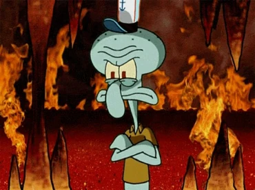 I have a theory about the security system as shown in "Just One Bite." Let's start. So first, there's a bucket of gas on the door. The gas bucket is to prevent people from entering because once the person opens the door, it spills on them and a robot with a match lights the gas, exploding the person who enters. But how do people enter? So I think that there's an unseen crane that lifts the bucket on the door and also takes it off via a button both in and outside. And for the kitchen, there's another crane that carries a grease bucket, but the crane also lifts the Patty vault so SpongeBob can count the sesame seeds. So I think the Patty vault is located under the kitchen, but under the kitchen is also a grease trap, and I think the Patty vault is in there. And a crane fishes it out, and then that's when it's ready for SpongeBob.