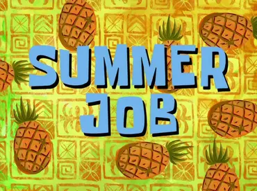 The title card is different with the pineapples are red instead of orange, the background is black & gray instead of light yellow & dark yellow, Finally the word title is purple instead of light blue.