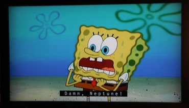 Do you guys remember the Season 6 episode "The Card?" During one scene, SpongeBob is surprised at what Patrick does, and yells "Dear Neptune!" I was using a D.V.D, and the captions mistook what he said. They thought he said, Da** Neptune!"