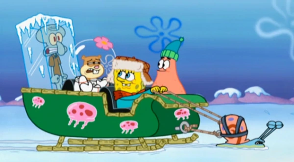 - Squidward juga dapat terlihat mengenakan kostum Santa selama "Holidays Selamat Ha Ha" komersial, karena perannya sebagai Santa Claus di "Christmas Who?" untuk menghindari menyakiti perasaan SpongeBob.