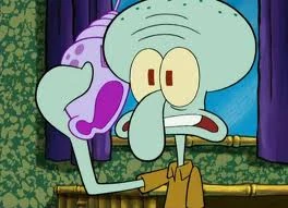 Squidward mencoba menenangkan dirinya dengan membayangkan Squilliam mengenakan pakaian dalam. Hasilnya (gambar) tidak membuatnya tenang.