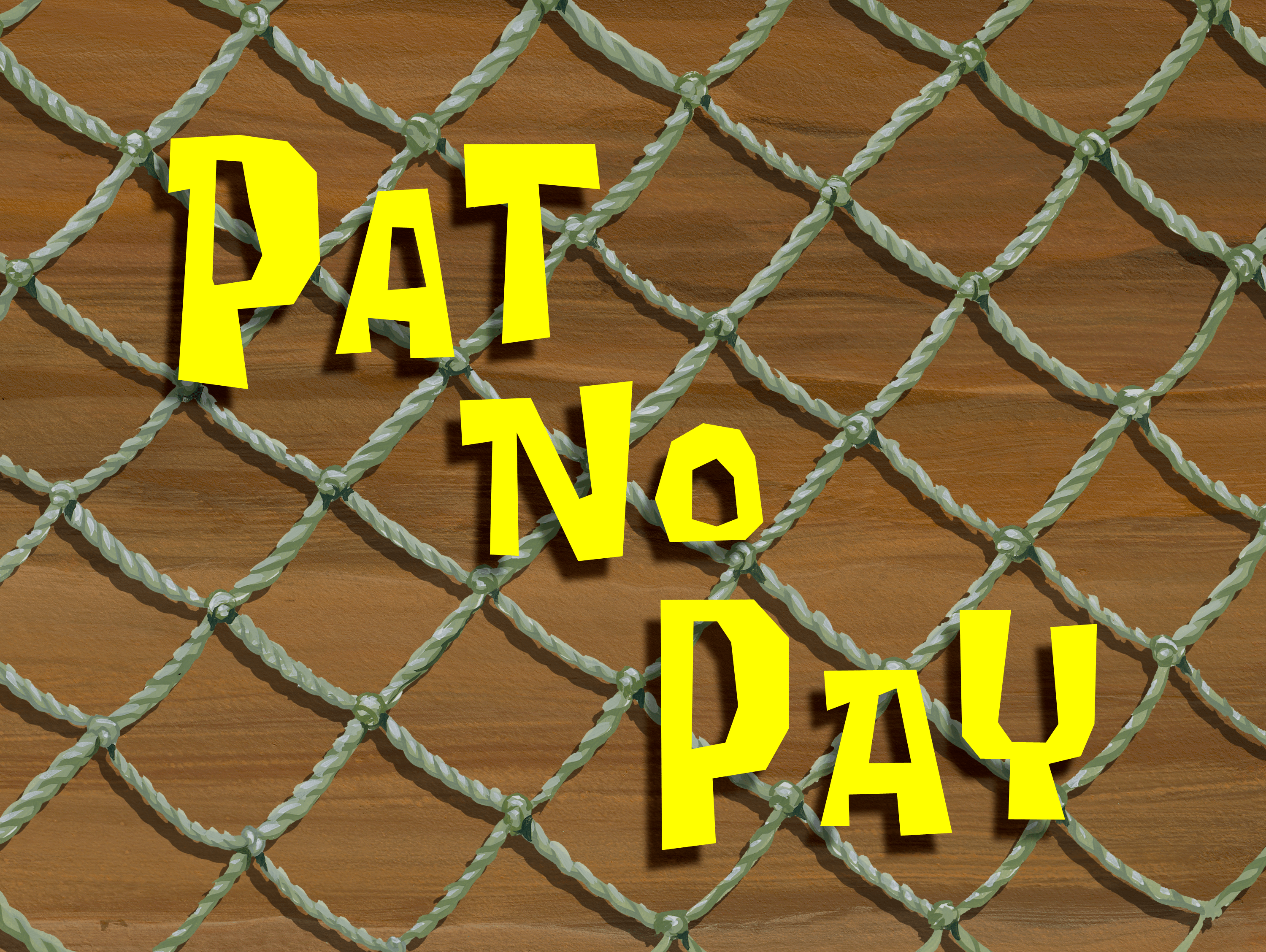 | Er hangen haken boven Bikinibroek en Spongebob en Patrick spelen daarmee. | ||