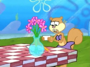 | Spongebob verrast Sandy met bloemen. | |||