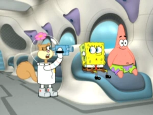 | Sandy is bezig aan een raket als Spongebob langskomt. Een tijdje later start Spongebob de raket per ongeluk. | ||