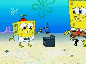 | Spongebob blaast een bel en het wordt zijn maatje. | ||