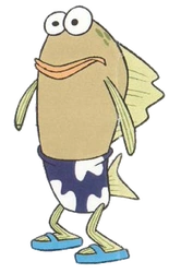 Sandals - ryba koloru oliwkowego nosząca fioletowe spodenki z białymi kwiatami oraz sandały (od nich powstało jego imię). Zazwyczaj widziany jest surfujący na Błotnistej Lagunie. Nie jest zbytnio inteligentny. Czasami wygląda tak jak Scooter. Jest mężem Shubie. Ma z nią trójkę dzieci: Tylera, Taylora i Shelly. W odcinku "Syrenaman i Skorupin" został zauważony jak całuję poduszkę. Jego numer incydentalny to 156.