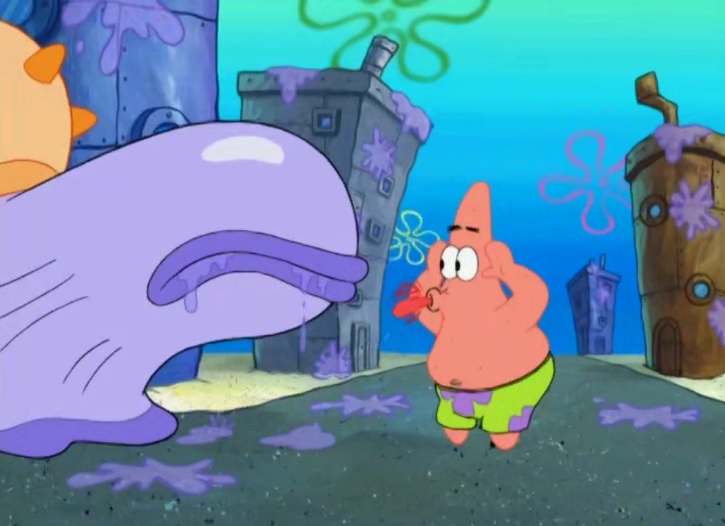 Губка Боб задаётся вопросом, а что это за улитки. Тут они с другом видят репортаж по телевизору, в котором репортёр рассказывает о вторжении улиток, как вдруг его тоже съедает моллюск. Тогда Патрик говорит своему другу, что ни капельки не боится этих улиток. Он доказывает это, когда подходит к одному моллюску и плюёт ему в лицо. Но он злится и гонится за ребятами до "Красти Краба ".