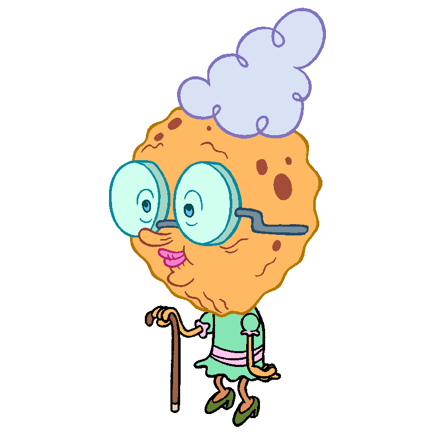 Бабуля Квадратные Штаны очень добрая и милая, любит целовать своего внука, вязать ему плед, печь печенье и рассказывать истории с его детства.