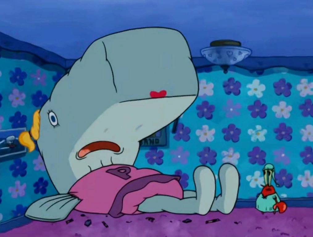 Они привели дочь Крабса в "Красти Краб" и Губка Боб принёс ей крабсбургер. Перл съедает его и перестаёт расти и голодать. Она сказала, что просто выросла. Мистер Крабс спросил Боба, что он добавил в бургер. Губка сказал, что это любовь. Мистер Крабс рассмеялся.