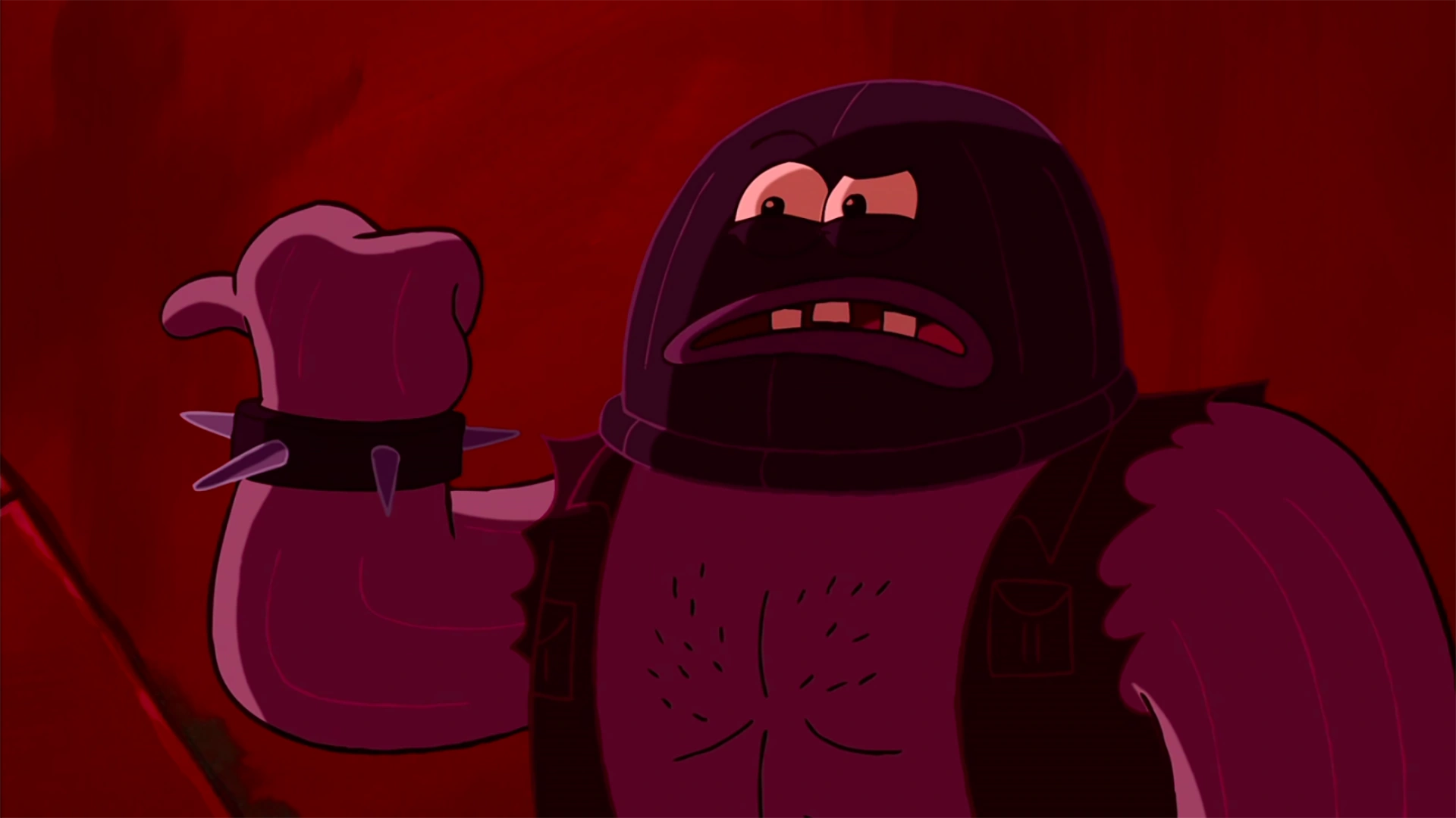 Он - огромная, стройная, фиолетовая и мускулистая рыба в синей лыжной маске, темно-синем пиджаке и синих штанах.