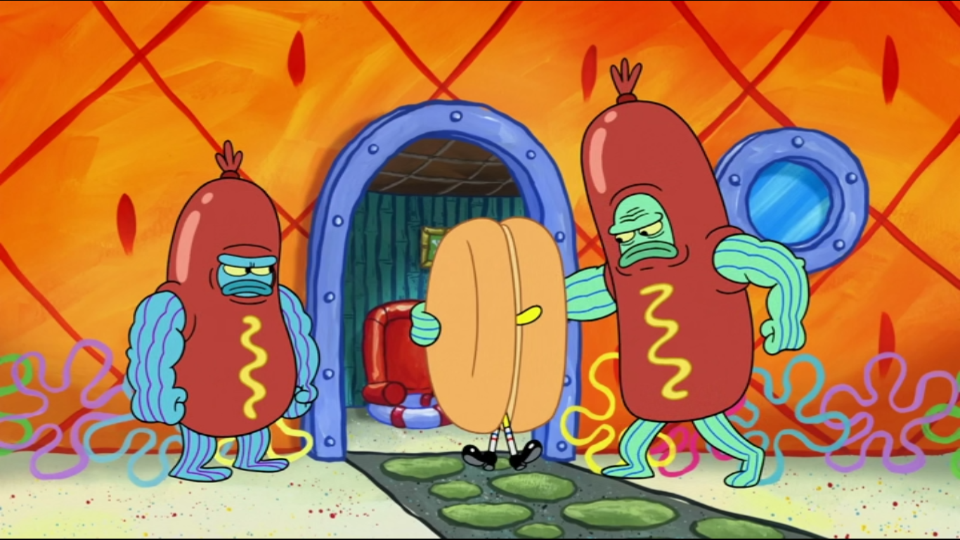 Тогда грустный Боб пришёл к себе домой и увидел, что Гэри снова голоден, но его "Улитко" кончилось. Губка Боб сам готовит улиточный корм, который очень нравится Гэри и Патрику с двумя головами. Губка Боб радуется, что всем снова нравится его еда. Вдруг в дверь постучались. Губка Боб открыл дверь, а на пороге стояли парни в костюме хот-догов и похитили Боба, отнеся его в ресторан хот-догов мистера Винера и поставив его за плиту. Винер сказал, что всем клиентам нравятся его мини-бургеры и он теперь будет их готовить. Когда он отошёл, то появился Пицца-Пит и спас Боба, но при этом понёс к своей плите.
