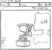 Сквидвард рвёт записку, оставленную Губкой Бобом в коробке, но в следующем кадре все кусочки записки исчезают.
