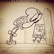 Момент, когда Губка Боб подходит к Сквидварду и спрашивает: "Что ты делаешь?" является отсылкой на фразу Изабеллы из мультика "Финес и Ферб ".