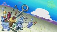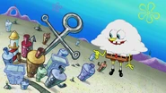 Губка Боб бросается на Допплера и начинает плакать, его слёзы впитывает Кап-Кап и, разозлившись, забирается в тело Допплера, пока не встречает своих родителей. После Губка прощается с Кап-Капом, а тот на память дарит Губке Бобу мини-облачко, которого Губка Боб назвал Кап-Кап младший.