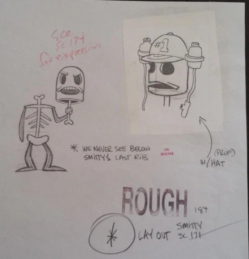 Когда Смитти лежит в гробу, на его шее видны позвонки, но когда он встает и разговаривает с мистером Крабсом, у него остается только одна шейная кость.