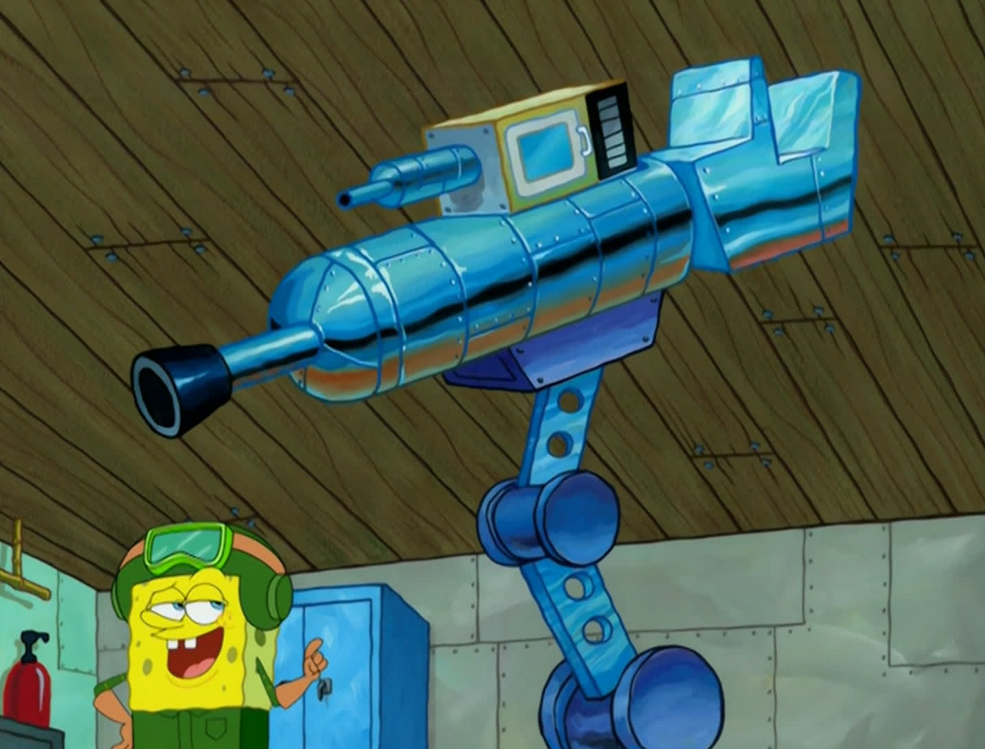 Когда Губка Боб разговаривает с тарелкой перед тем, как выстрелить лазером, его речь и акцент являются отсылкой к фильму о Джеймсе Бонде 1962 года "Доктор Ноу".