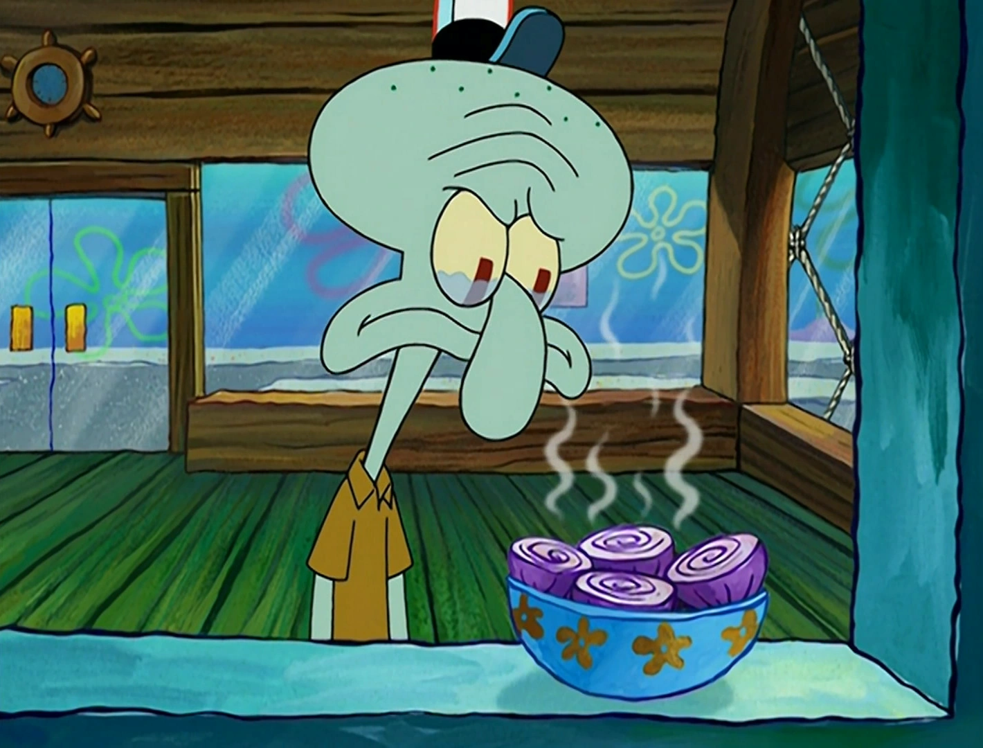 Лук (англ. Onions) - распространённый ингредиент, используемый в крабсбургерах. Впервые он появляется в эпизоде "Требуется помощник". В шоу его также часто используют, чтобы заставить персонажей плакать для создания комического эффекта.