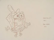 Когда Сквидвард чистит зубы, в его отражении, пена находится за носом, но в не отражении перед носом.
