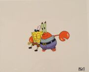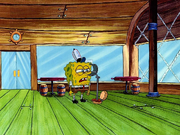 Когда Губка Боб и Сквидвард заполоняют "Красти Краб" крабсбургерами, и ресторан взрывается, если внимательно посмотреть сквозь дым, "Красти Краб" исчезает, а вывеска всё ещё стоит. Но когда дым рассеивается, вывеска лежит среди обломков "Красти Краба".