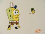 Губка Боб представляет себя сержантом-инструктором на одном из своих плакатов "Сотрудник месяца", который требует от него работать как можно усерднее, чтобы Сквидвард не победил. Фотографии Губки Боба являются отсылкой к армейскому маршу.