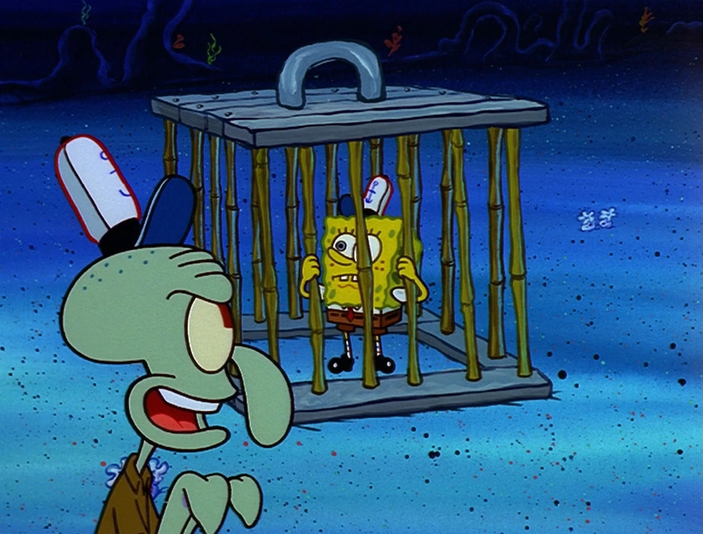 Это один из редких случаев, когда Губка Боб намеренно делает Сквидварду плохо.