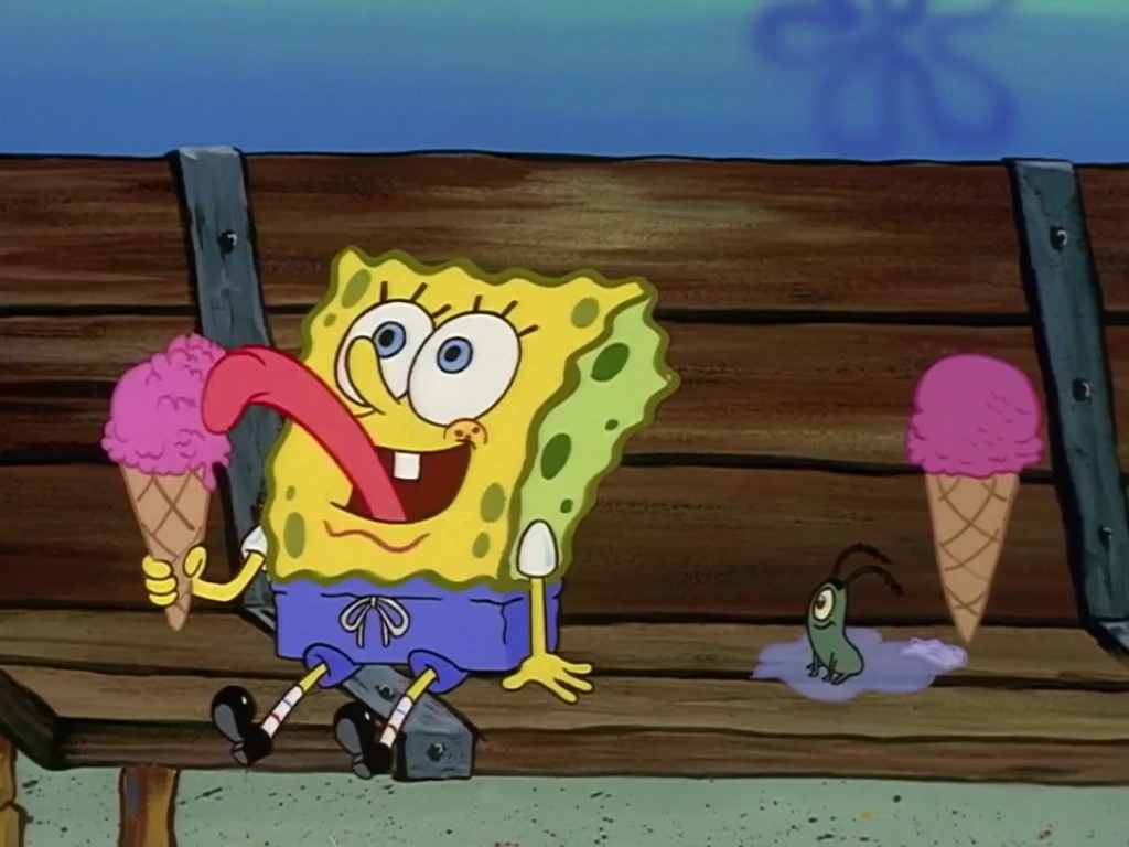 Губка Боб счищает песок с детского мороженого, но когда все рыбы окружают Планктона, когда он плачет, мороженое снова становится грязным.