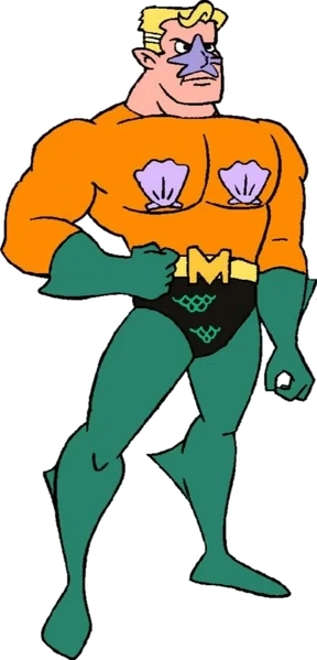 Морской Супермен - это пародия и на Аквамена, и на Бэтмена. У него круглое тело и тонкие ноги. Его костюм очень похож на костюм Аквамена: оранжевая рубашка, зелёные брюки и ракушки на сосках. Он также носит розовые тапочки из-за своего возраста. Он носит фиолетовую морскую звезду на носу, подаренную одной из русалок, благодаря этой звезде он может дышать под водой. У него есть жёлтый или фиолетовый пояс с металлической охра-жёлтой или синей буквой "М" на нём, способный уменьшать людей. Его способности, включающие в себя умения управлять морскими существами, также похожи на способности Аквамена. Секретная штаб-квартира Морского Супермена, логово, является пародией на логово Бэтмена, а их автомобиль, невидимый лодкомобиль, является пародией как на Бэтмобиль.