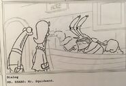 В сцене сразу после того, как Губка Боб отбирает у Планктона печенье с предсказаниями, Ленни показан без костюма на общем плане, но в кадре, где Сквидвард просит сделать перерыв, Ленни одет в костюм.