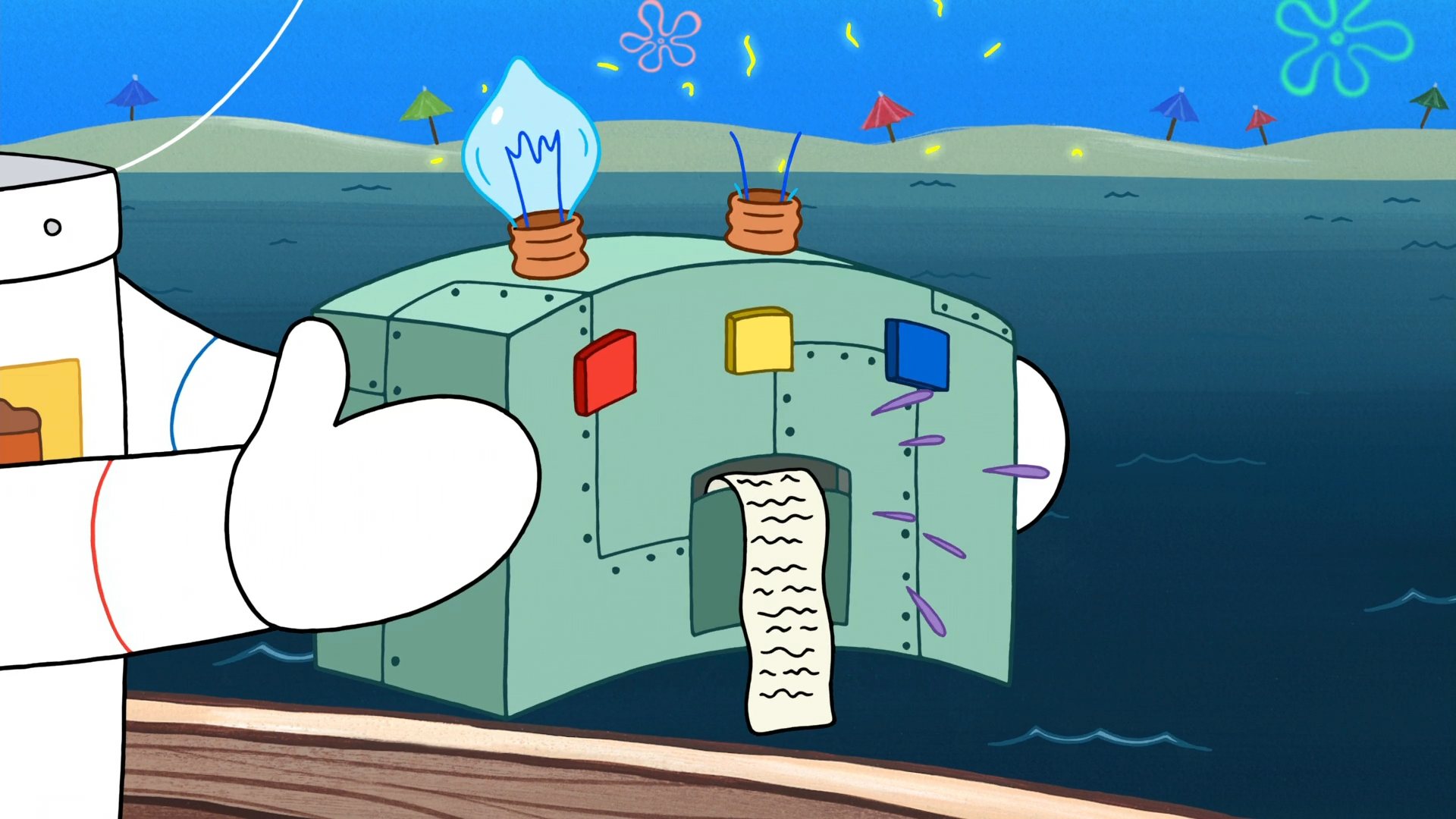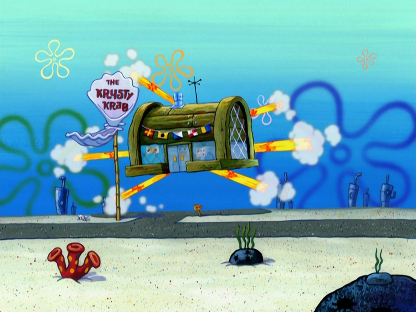 "Спанч Боб против крабсбуроделки" | Камео; он проснулся из-за взрыва крабсбуроделки. |