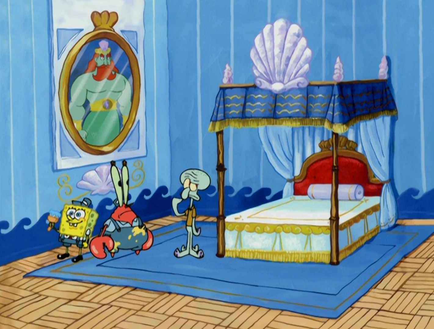 "Трезубцевая трагедия" | Главная; он нечаянно меняется трезубцем с Губкой Бобом на лопатку. |