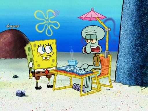 Губка Боб снова достаёт Сквидварда во время его чтения.