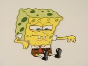 Когда Губка Боб открывает дверь кухни "Красти Краба", его левый глаз окрашен в зелёный цвет.