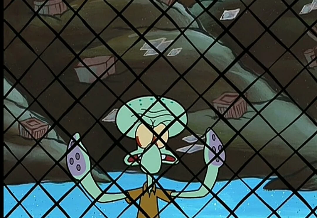 Сквидвард почти угрожает убийством Губке Бобу, но тут же его прерывает полиция. Он мог бы сказать, что убил бы Боба. это навлекло бы на него еще большие неприятности.
