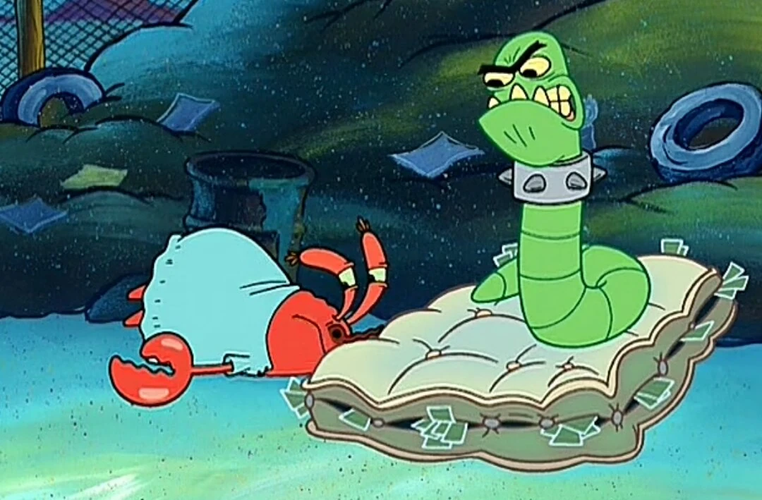 Ирония: Губка Боб, Патрик и Сквидвард могли вытащить деньги мистера Крабса из его старого матраса, прежде чем выбросить его, и положить их в новый.