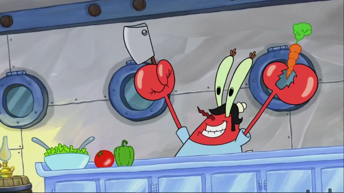 В серии "Панцирь для мужчины " мистер Крабс был крут на флоте и его звали "Крабс Железный пресс", но в этой серии нам показали его поваром во флоте.