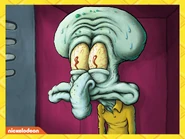 Когда вонючее дыхание одного из покупателей бьёт Сквидварда в лицо, его шапка падает, но когда он снова поднимается, она снова на его голове.