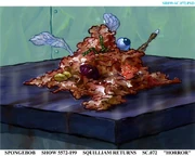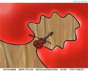 Когда Сквидвард поворачивает голову к Сквильяму, тот идёт налево, но когда Сквидвард кладет свою шляпу в мусорное ведро, Сквильям оказывается справа.