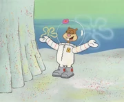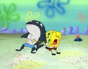 Когда Сэнди держит верёвку и гонится за Губкой Бобом и Патриком, она тяжело дышит, но её рот не шевелится.