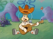 Неправильное толкование Губкой Бобом вещей, по которым Сэнди скучает из Техаса, включает в себя Флэтса, держащего куб, названный как кубарисы, пирог с банкой гороха как домашний пирог по-техасски, большие ёмкости с водой, которые носят на голове как "10-литровые шляпы", и колючая буква Q как барбекю.