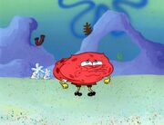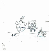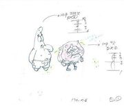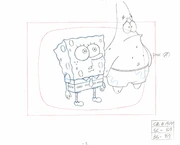 Перед тем, как Губка Боб и Патрик начинают ходить по кругу, у Губки Боба два контура нижней губы.