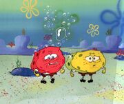 Всякий раз, когда Патрик и Губка Боб пытаются поймать медузу, контур Сэнди становится зелёным.
