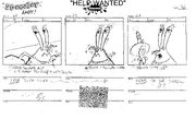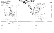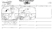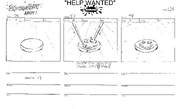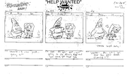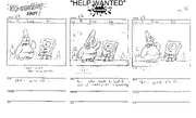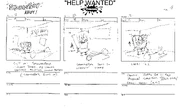 Губка Боб упоминает название эпизода, когда видит табличку "Требуется помощник" на окне.