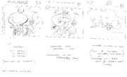 В сцене балагана в "Красти Крабе", где ресторан прыгает слева направо, белые пятна на двух флагах "Красти Краба" фиолетовые.