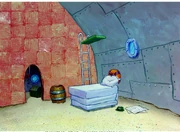 В начале серии в "Красти Крабе" кухня, кабинет мистера Крабса и туалет отсутствуют. Главный зал обходится стеной там, где должны находиться данные помещения.