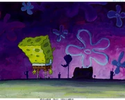 Когда мистер Крабс и Сквидвард ударяются о шест, появляется кадр, похожий перевёрнутый фон для титров.